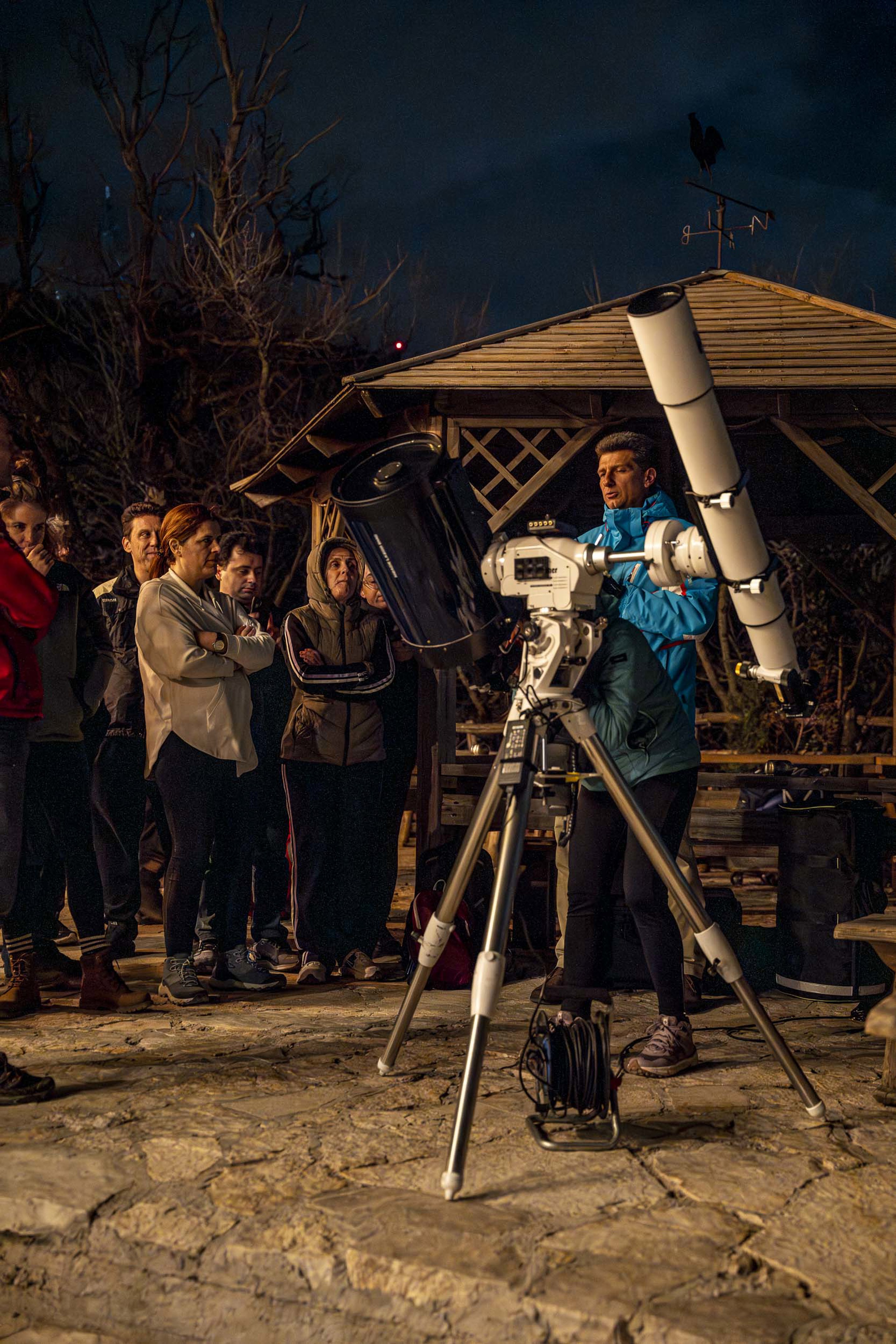 Η απογευματινή πεζοπορία στην Πάρνηθα είναι ιδανική για όσους αγαπούν τις ορεινές διαδρομές και τη γαλήνη που προσφέρει το τοπίο λίγο πριν το σούρουπο. Ο ουρανός μεταμορφώνεται σε έναν ζωντανό πίνακα ζωγραφικής, με τα μοναδικά χρώματα που απλόχερα μας χαρίζει η φύση. Η διαδρομή είναι εύκολη και κινείται κυρίως μέσα στο πυκνό ελατοδάσος, ξεκινώντας από το καταφύγιο Μπάφι. Κατά τη διάρκεια της πεζοπορίας, απολαμβάνουμε τον ήχο των πουλιών καθώς προσεγγίζουμε το εκκλησάκι του Αγιου Πέτρου, όπου θα κάνουμε μια στάση πριν επιστρέψουμε στο καταφύγιο Μπάφι. Εκεί, μας περιμένει ένα από τα μεγαλύτερα φορητά αστρονομικά τηλεσκόπια, έτοιμο για να μας αποκαλύψει την ομορφιά του νυχτερινού ουρανού. Θα έχουμε την ευκαιρία να δούμε από κοντά τους πλανήτες και τα αστέρια,παρέα με έναν έμπειρο αστρονόμο που θα χειρίζεται το τηλεσκόπιο και θα είναι διαθέσιμος για συζήτηση!