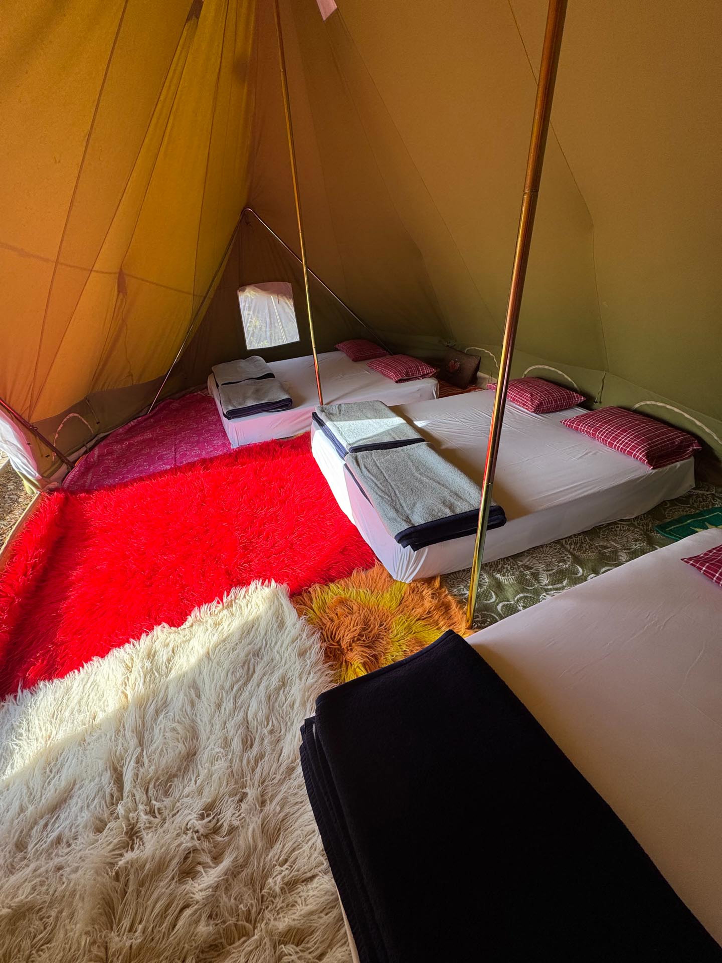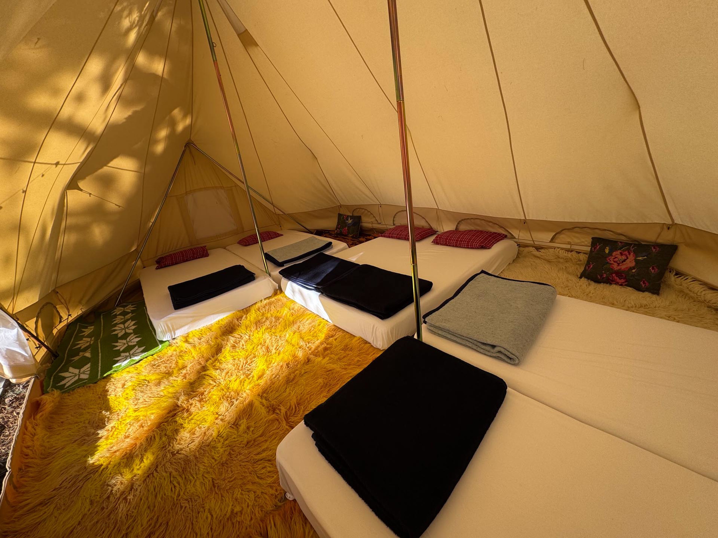 Η διαμονή πραγματοποιείται σε μεγάλες σκηνές τοποθετημένες σε ειδικά διαμορφωμένα πλατό, εξοπλισμένες με στρώματα και κουβέρτες. Κάθε σκηνή φιλοξενεί έως 6 άτομα και οι διαθέσιμες θέσεις είναι περιορισμένες. Οι υπόλοιποι συμμετέχοντες θα διαμείνουν σε σκηνές που παρέχουμε εμείς, σε οργανωμένο χώρο του καταφυγίου. Η τοποθεσία είναι πραγματικά μαγευτική και το απόγευμα στο βουνό θα ζήσουμε μια ξεχωριστή εμπειρία, γεμάτη εικόνες και στιγμές που θα μείνουν αξέχαστες.