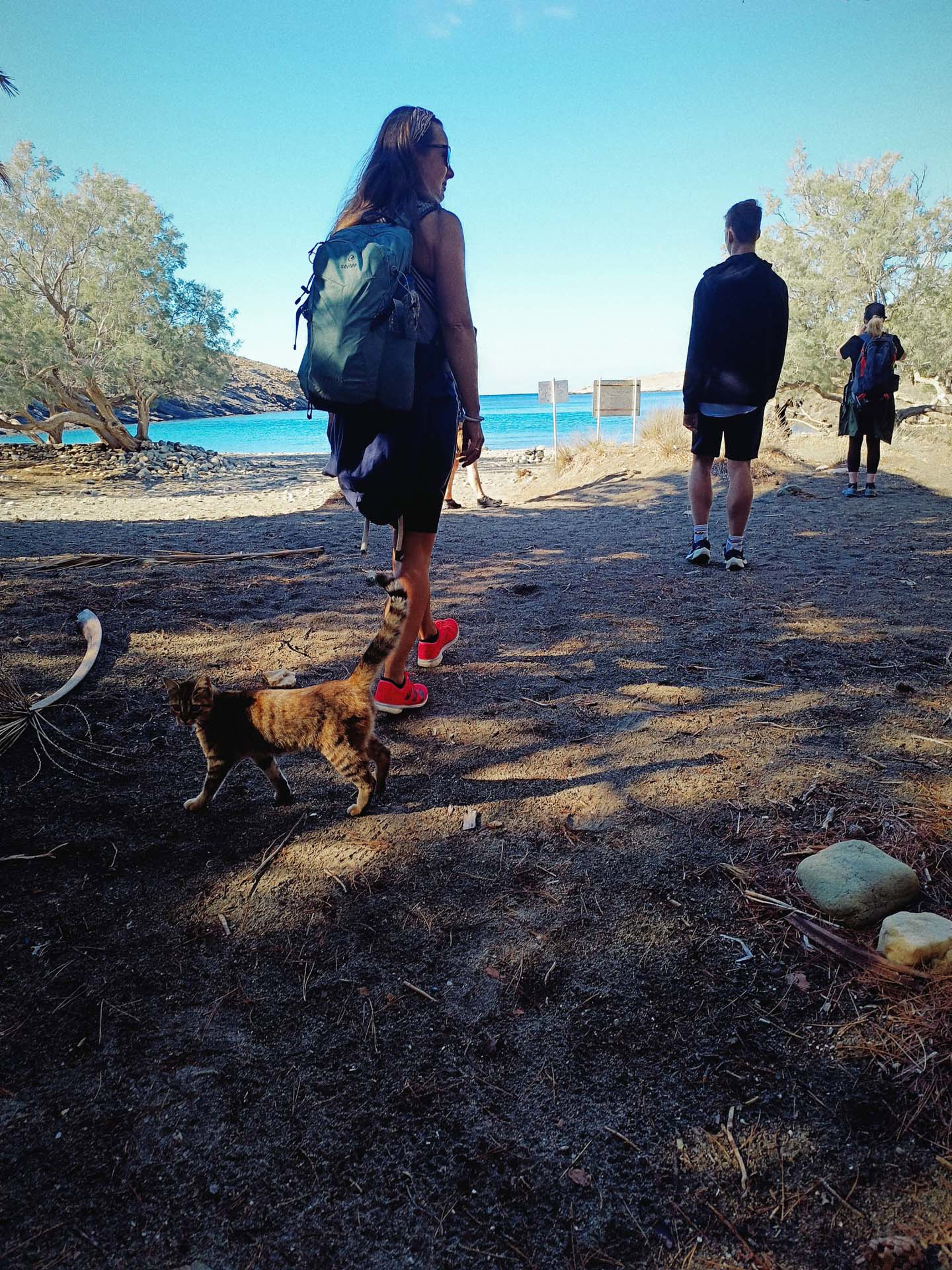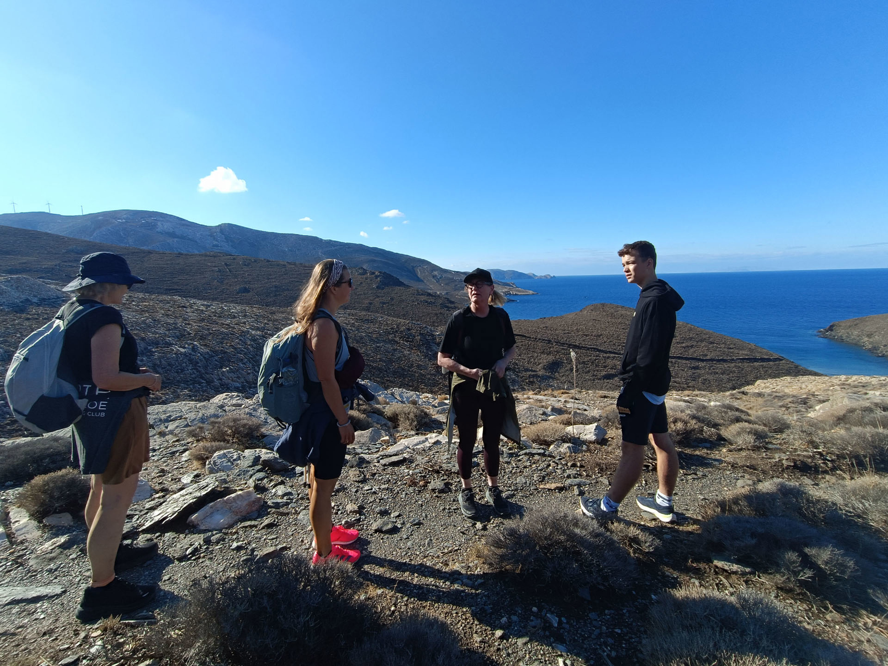 We walk along old, characteristic Cycladic paths—landmarks of a bygone era. We pass by an abandoned marble quarry, with visible signs of historical use.
