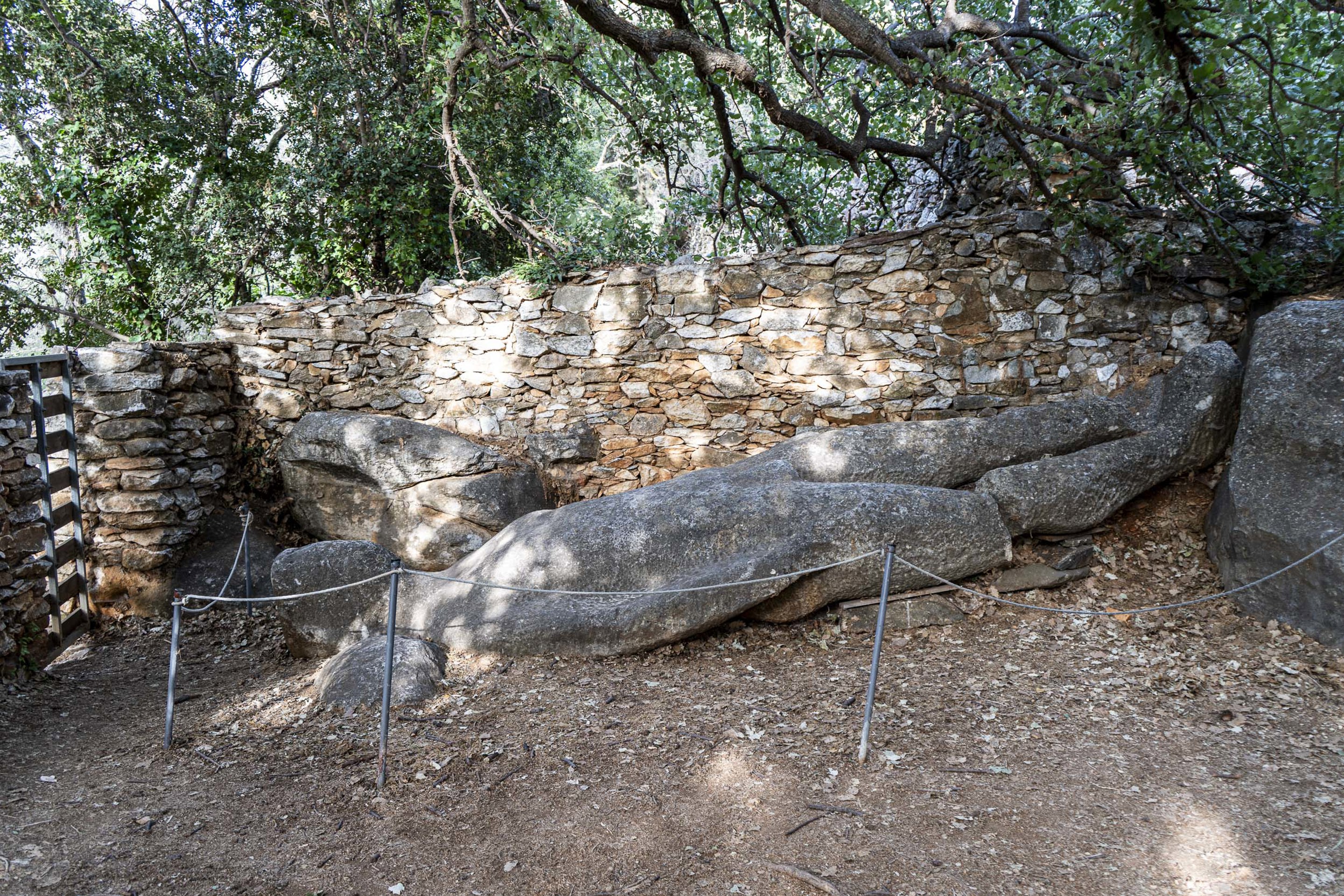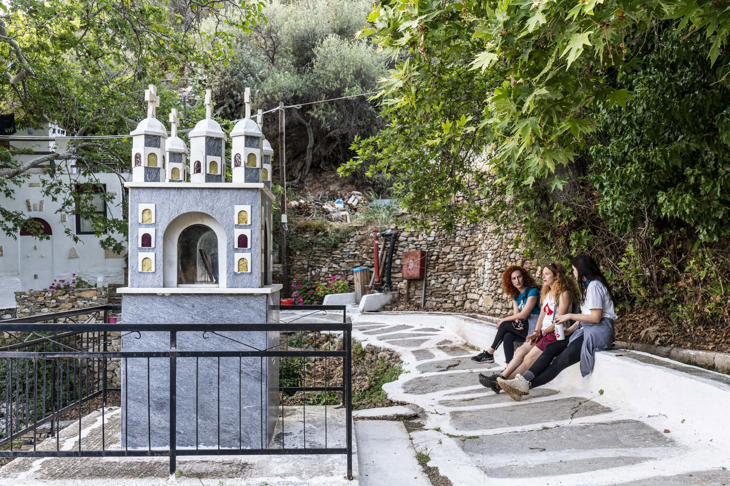 Passing through the small and peaceful village of Myloi, the route leads us to Kouroi Statues of Flerio, one of the island's most iconic archaeological landmarks. These monumental, incomplete marble figures from the 6th century BC still lie in the ancient quarry where they were first carved, offering a fascinating glimpse into ancient craftsmanship. Being among these massive statues makes it really easy to imagine the talent and ambition of the ancient sculptors.