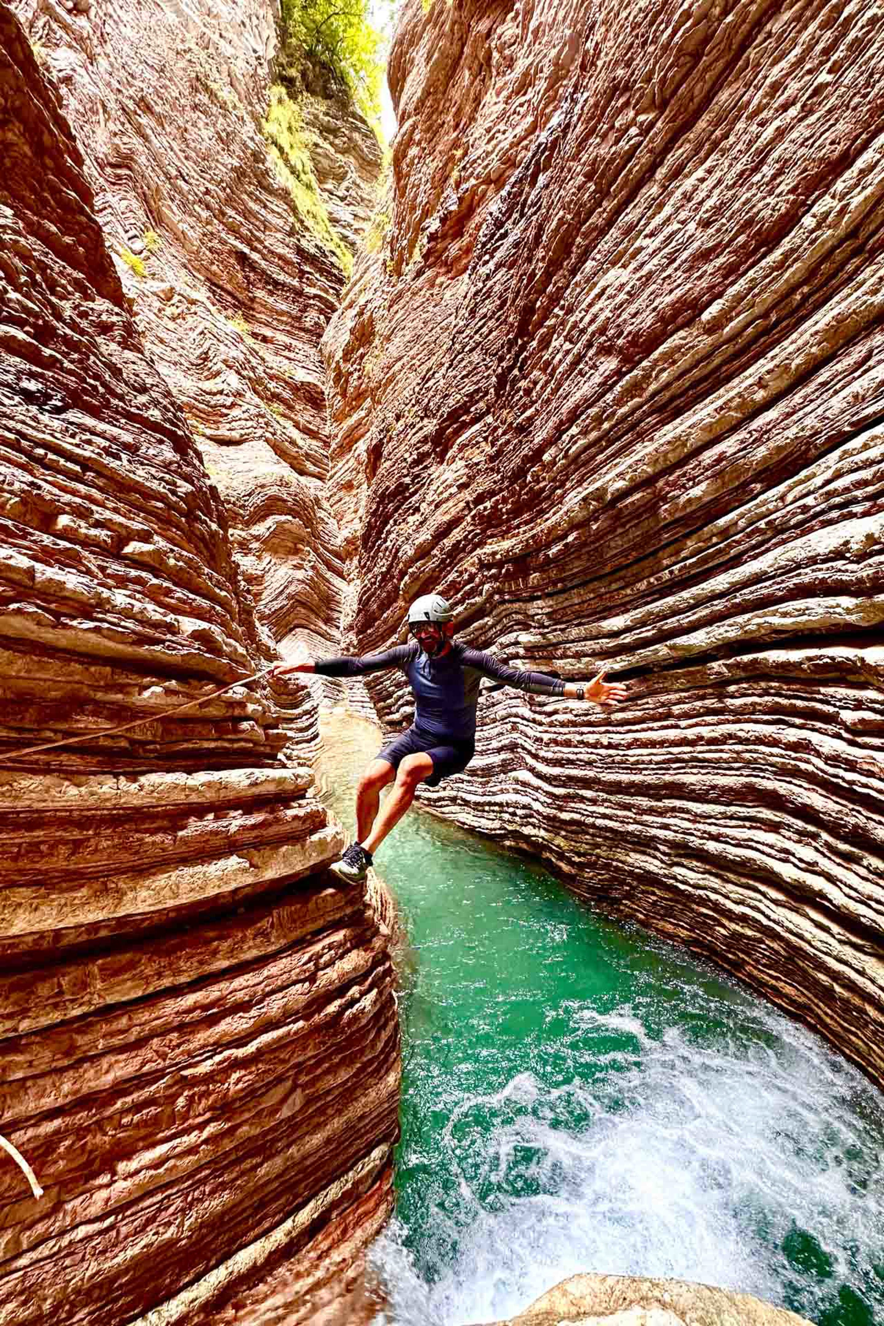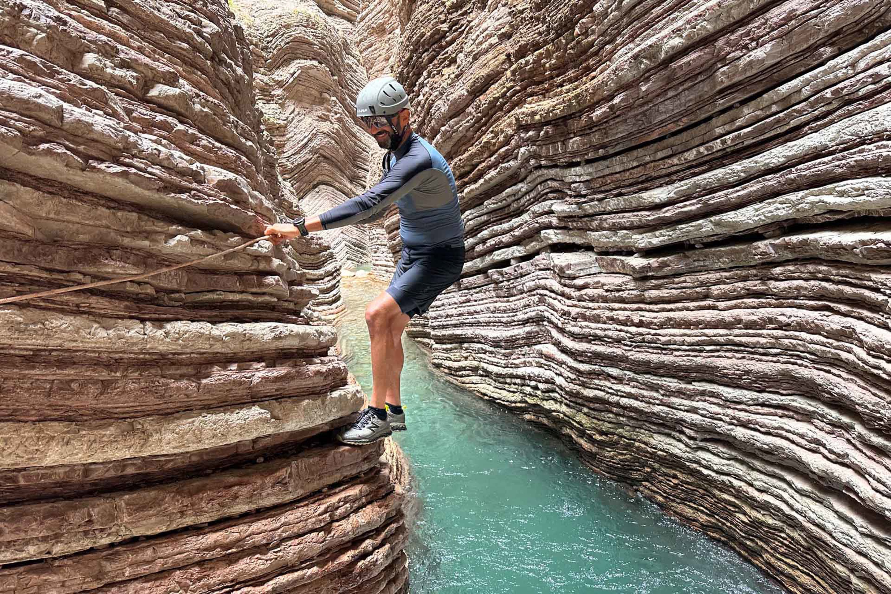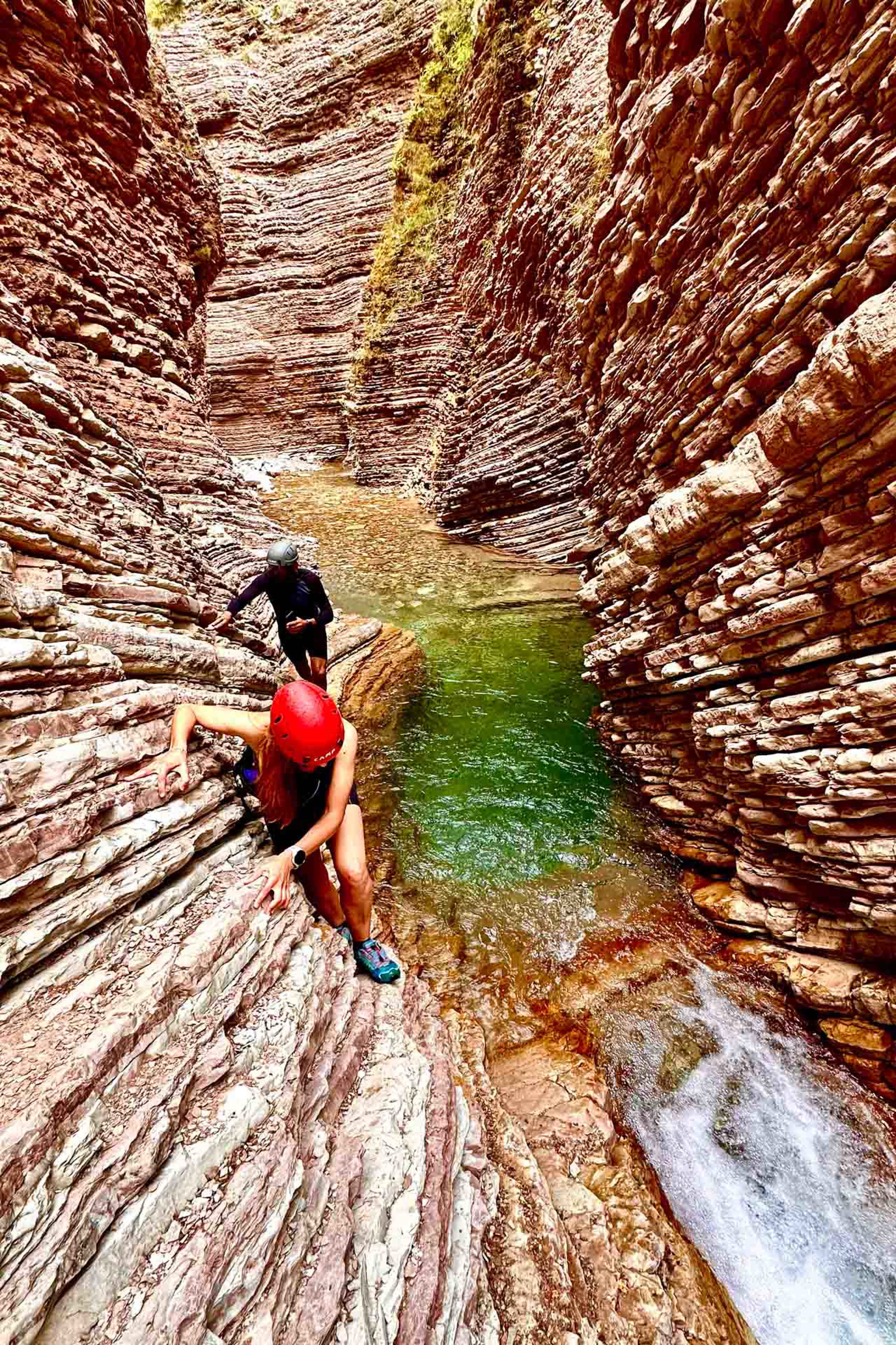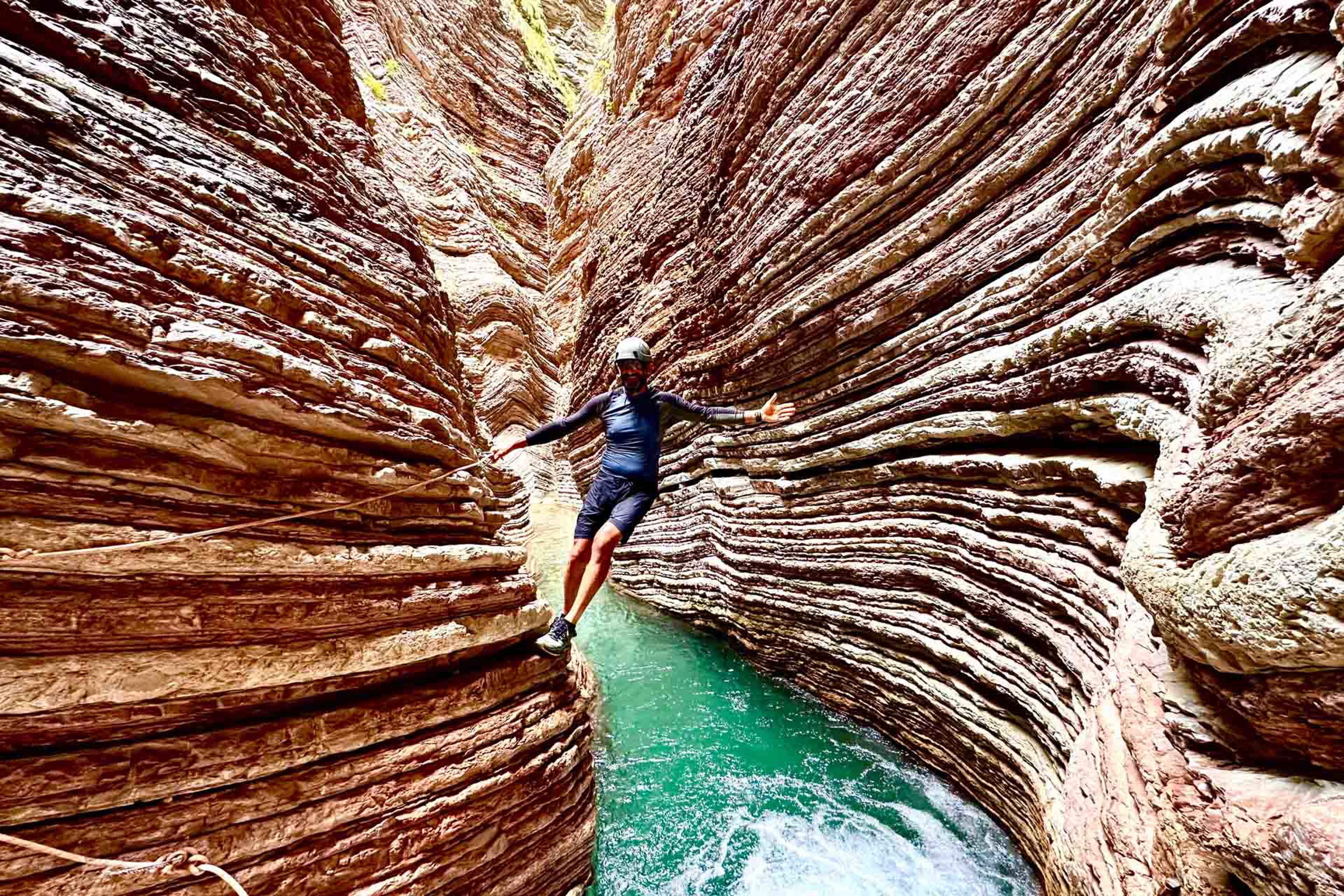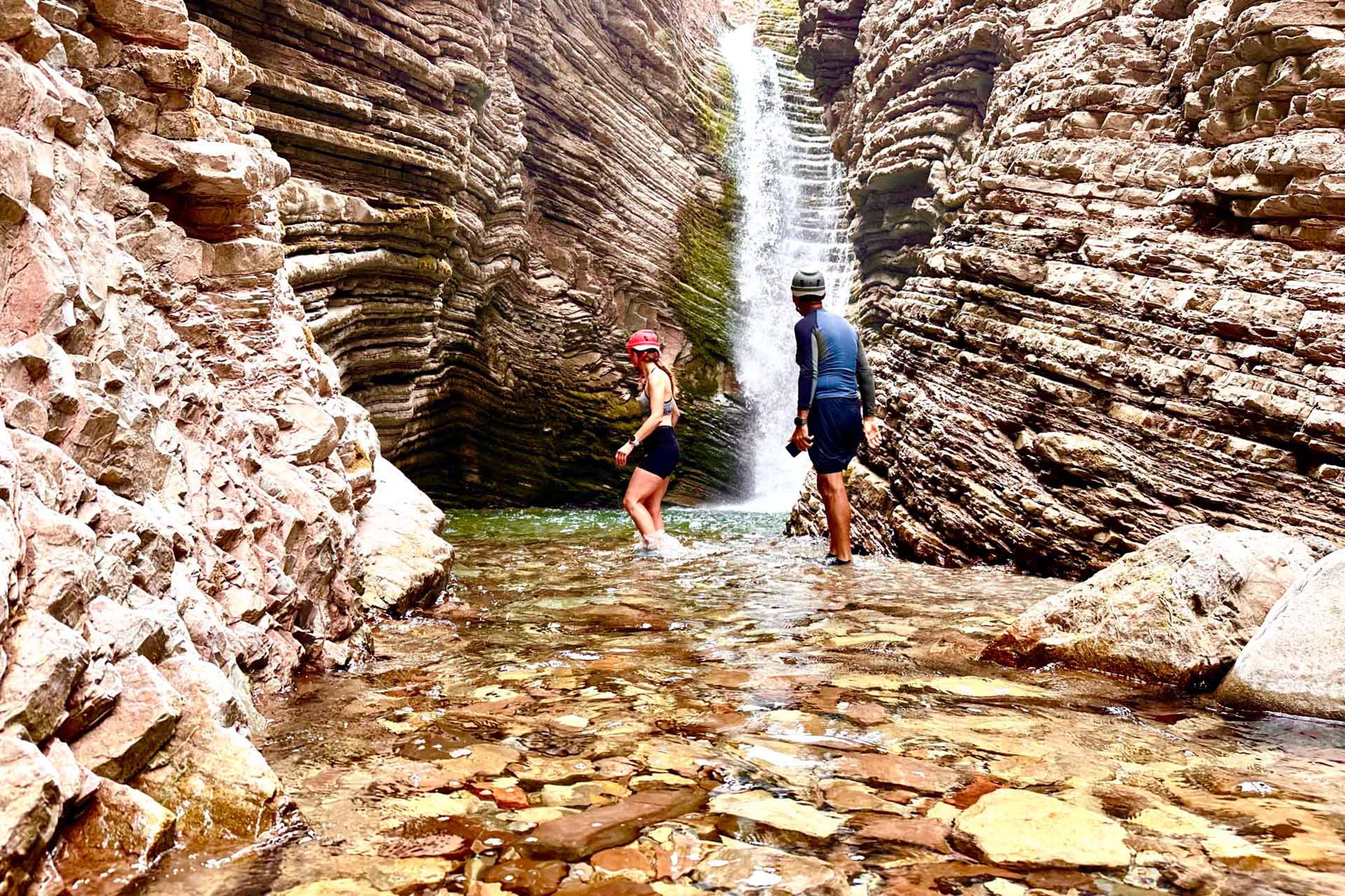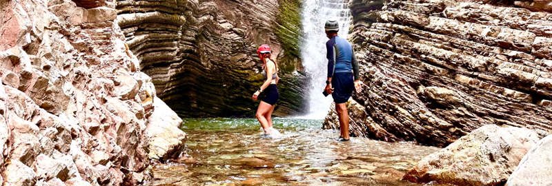 Swim in clear pools, climb natural rock steps with the help of ropes, and reach the impressive waterfall that closes the route. A refreshing dip here is the perfect reward before heading back.