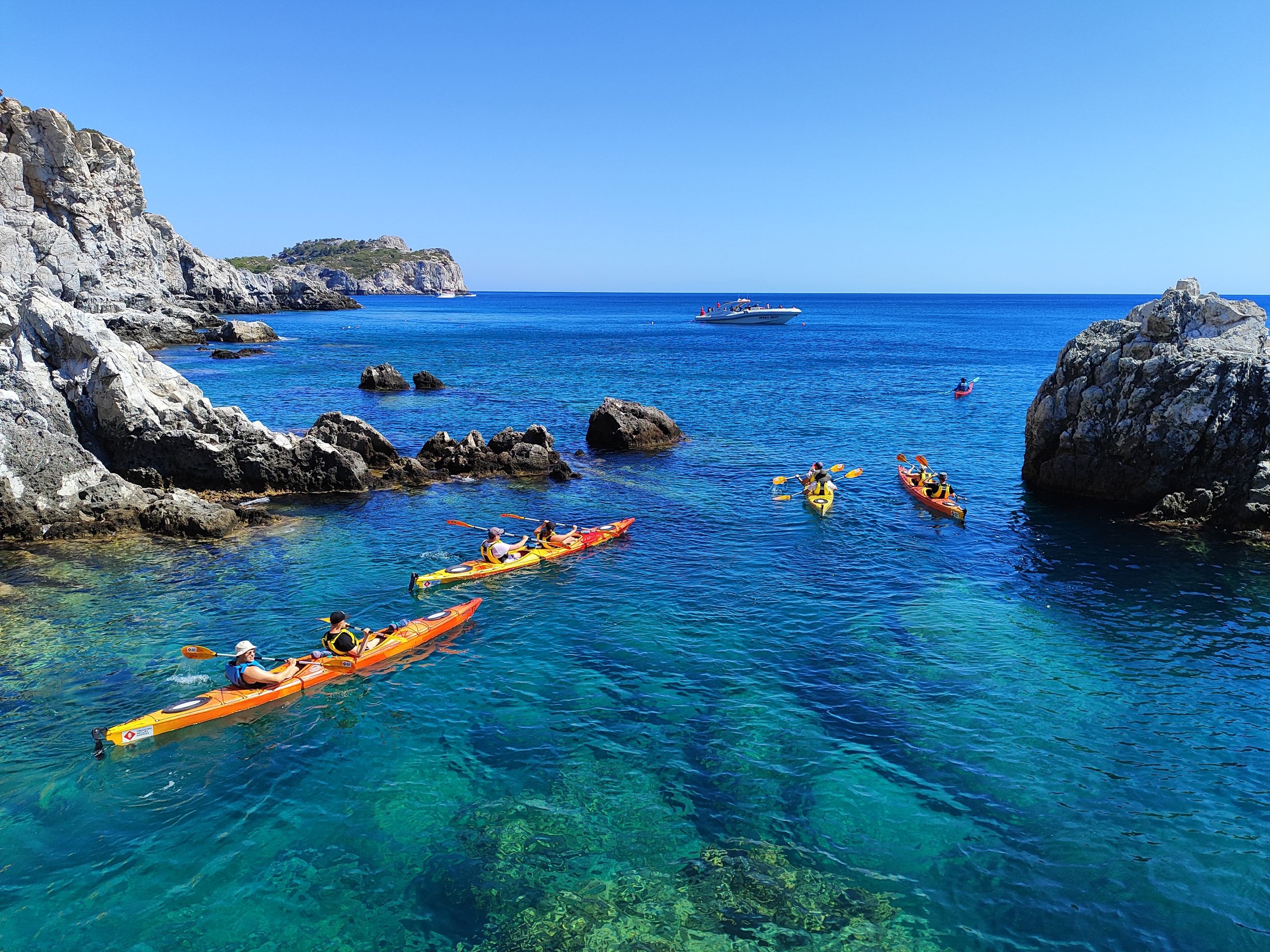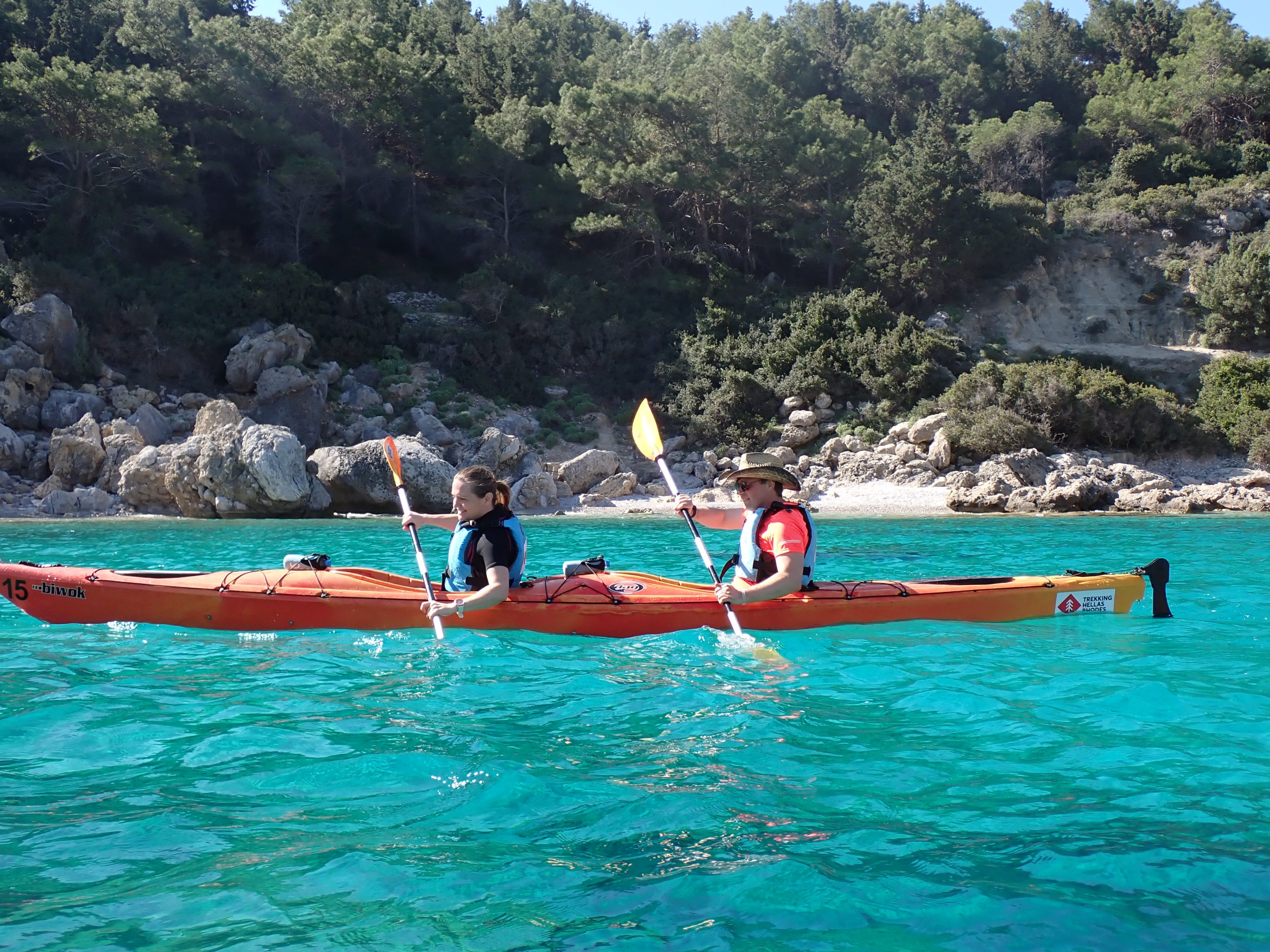 Embark on a half-day sea kayaking journey along Rhodes’ stunning east coast, where every paddle brings you closer to nature and hidden coastal gems. Starting at Kathara Beach in Faliraki, our certified sea kayaking leaders will provide a thorough introduction, show you how to handle your kayak safely, and equip you with everything you need , so you can fully enjoy the day.