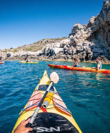 Lead or assist our half-day and full-day sea-kayaking trips along Rhodes’ spectacular coastline.