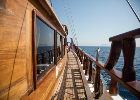 In the afternoon, board the gulet and sail toward Nisyros. Feel the gentle sway of the boat as you cross the sparkling Aegean and admire the islands on the horizon. Upon arrival, relax on deck, enjoy dinner on board, and optionally explore Mandraki, a picturesque village with narrow lanes and seaside charm.