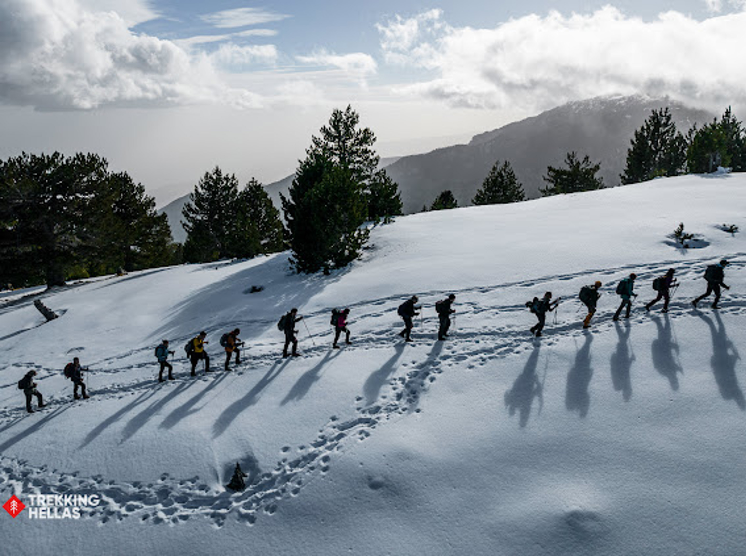 Experience winter on Mount Olympus, the mythical mountain of the gods, in a two-day adventure that combines exploration, learning, and breathtaking scenery. In January, the mountain is covered in snow, and the trail from Gortsia to the Petrostrouga refuge leads us through fir forests, Bosnian pines, and alpine landscapes that feel like they came out of a fairytale. From the refuge, the view toward the Aegean is stunning — and on a clear day, you can see all the way to Halkidiki and Mount Athos.